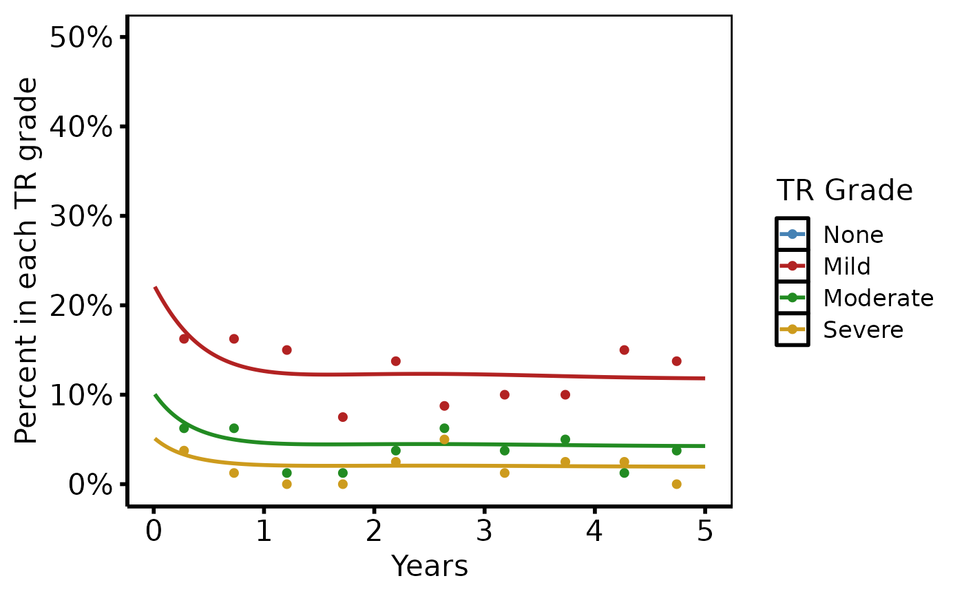 ggplot2::labs(x = "Years", y = "Percent in each TR grade") +