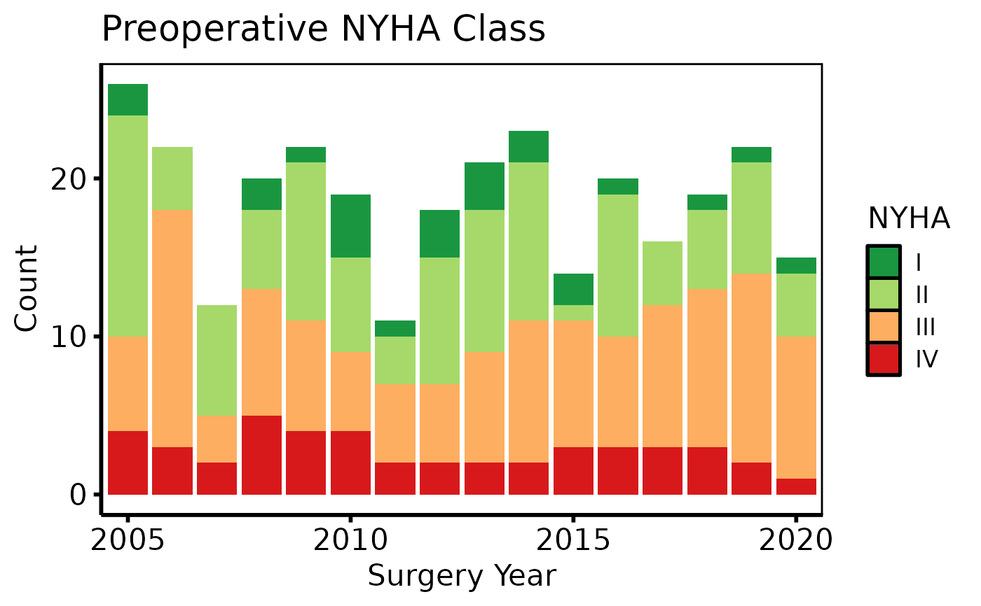 ggplot2::labs(x = "Surgery Year", y = "Count") +