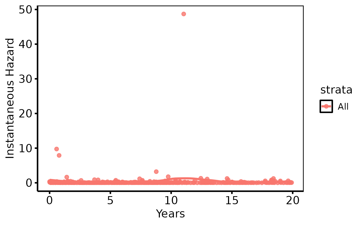 ggplot2::labs(x = "Years", y = "Instantaneous Hazard") +