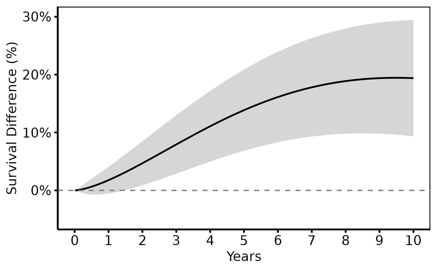# --- (1) Single comparison: TF-TAVR vs TA-TAVR (tp.hp.dead.life-gained) --
