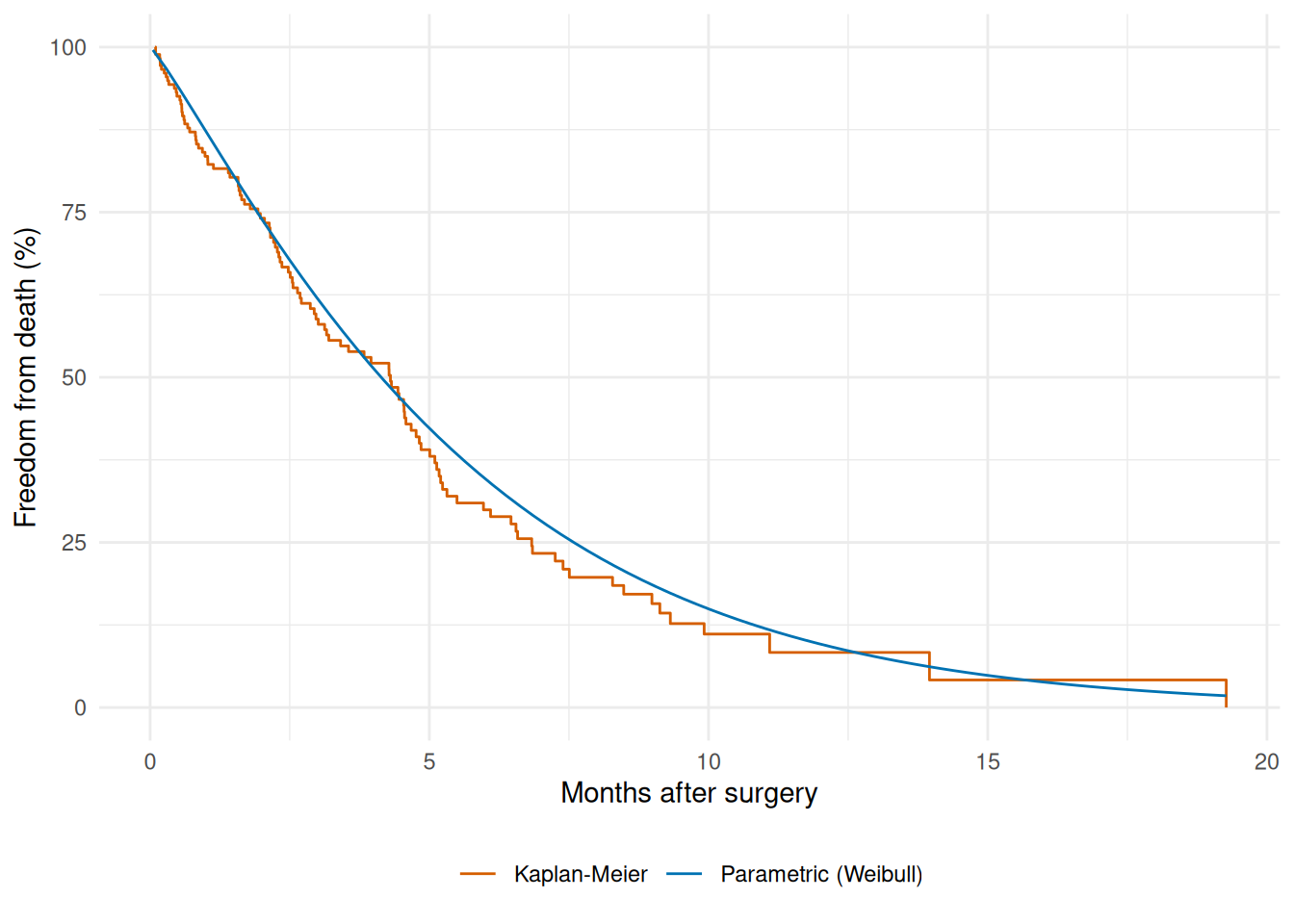 values = c("Parametric (Weibull)" = "#0072B2",